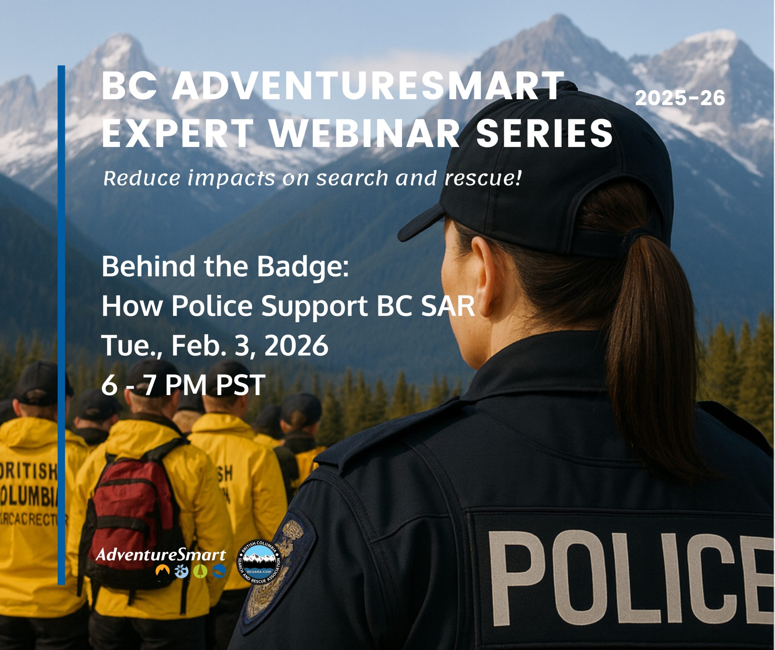 Ever wonder what happens behind the scenes when a search and rescue call comes in? In this webinar, learn how the Police work as a tasking agency with BC’s 78 SAR groups. From making critical decisions to providing resources and on-the-ground support, discover how police and SAR volunteers collaborate to keep people safe in BC’s backcountry.