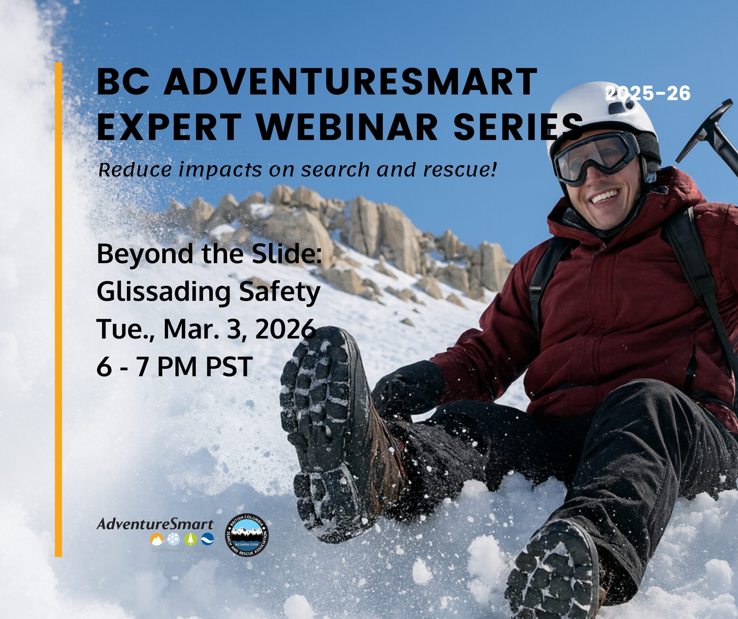 Glissading can be a fast and fun way down the mountain, but it comes with serious risks if done incorrectly. In this webinar, learn safe techniques, when to avoid glissading altogether, and how to make smart choices on snow-covered slopes. Build your skills and confidence so you can enjoy the descent while staying safe in BC’s mountains.
